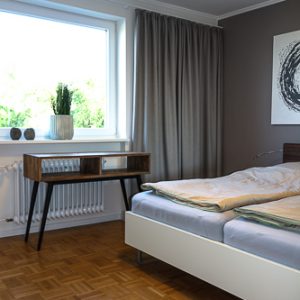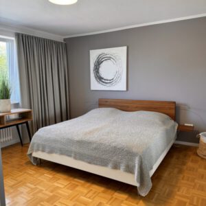 Das Schlafzimmer ist mit einem Doppelbett B180cm x L 200cm mit Einzelmatratzen ausgestattet. Jede Menge Schrankplatz ist vorhanden, um den einen oder anderen Pullover mehr, oder ein schickes Abendoutfit mit zu bringen.