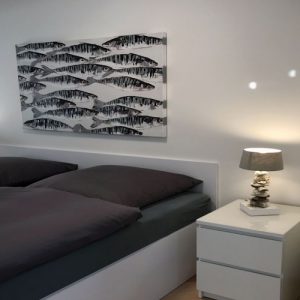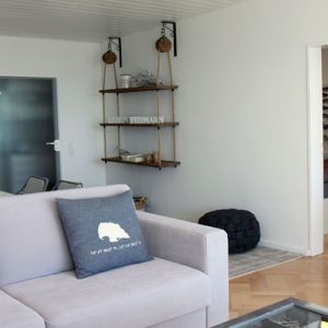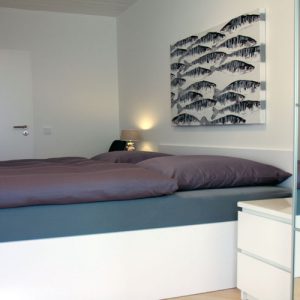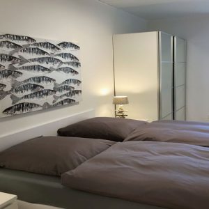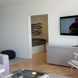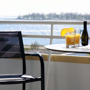 Im Wohnzimmer befindet sich der Eßtisch, von dem aus Sie schon beim Essen das Treiben auf dem Wasser beobachten können. Hier steht auch eine gemütliche Sitzgarnitur. Ein großer Wohnzimmerschrank und einem Flatscreen-TV vervollständigt das gemütliche hochwertige Wohnzimmer. Die Wohnung verfügt über kostenfreies WLan. Vom Wohnzimmer aus gelangen Sie auf den Balkon, der mit schönen Gartenmöbeln ausgestattet ist. Vom Wohnzimmer gelangen Sie auch ins gemütliche Schlafzimmer mit einem 1,80m breiten Doppelbett sowie einem großen Kleiderschrank. Von beiden Räumen aus können Sie den wundervollen Blick auf die Ostsee genießen.
