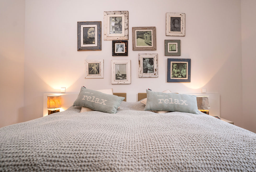 Das Schlafzimmer, ausgestattet mit einem 1,80m breiten und 2m langen Doppelbett mit zwei Einzelmatratzen, ist ebenfalls südlich ausgerichtet. Die Decken werden je nach Jahreszeit den Temperaturen angepasst. Auch Allergikerdecken und -kissen können auf Anfrage gestellt werden.